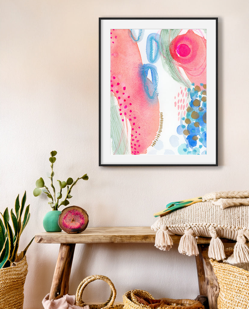 Let go of yesterday and lean into the vibrancy of now with 'Living For Today II', a dynamic abstract composition that pulses with movement, emotion, and color. Created with watercolor and soft pastels, this piece invites you to experience the present moment through fluid forms and expressive textures.